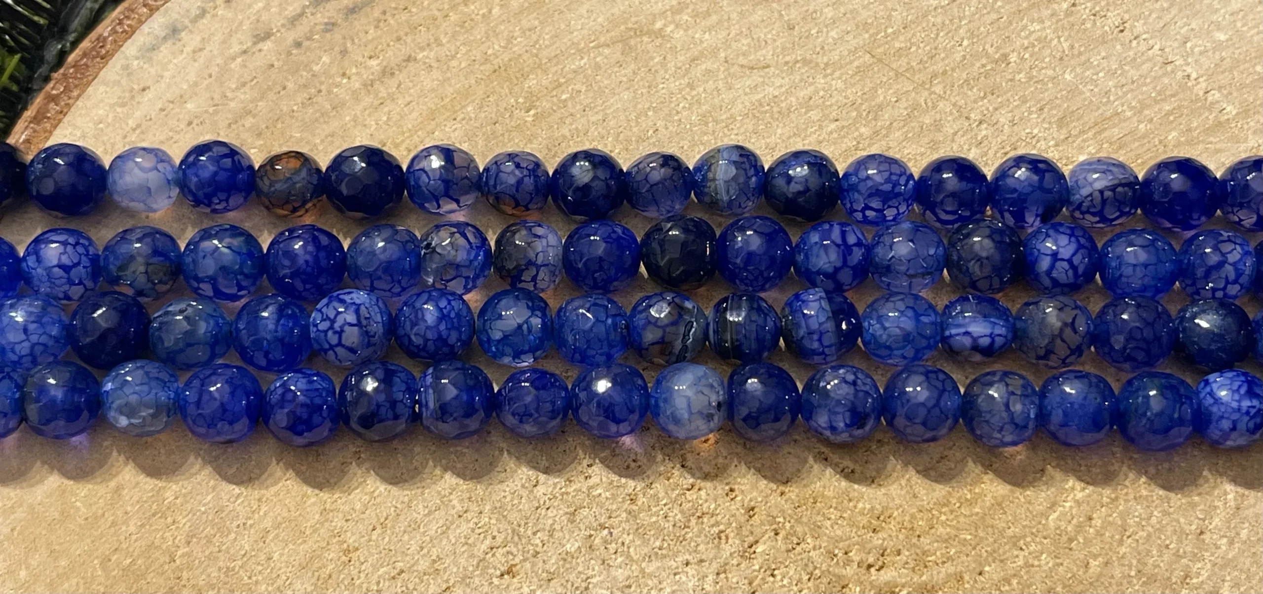 Perles naturelles en Agate veine de dragon facettée bleue en 8 mm