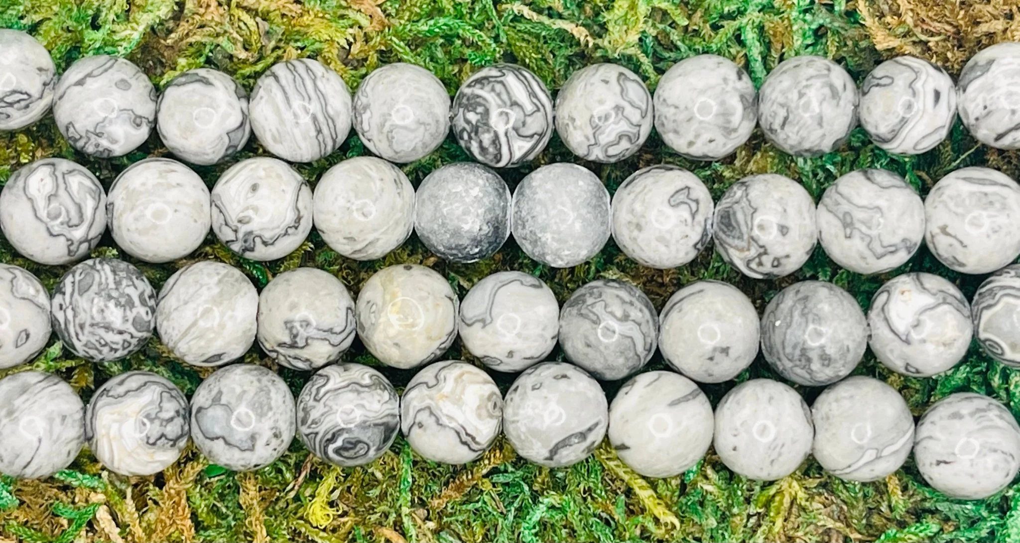 Perles naturelles en Jaspe gris en 8 mm