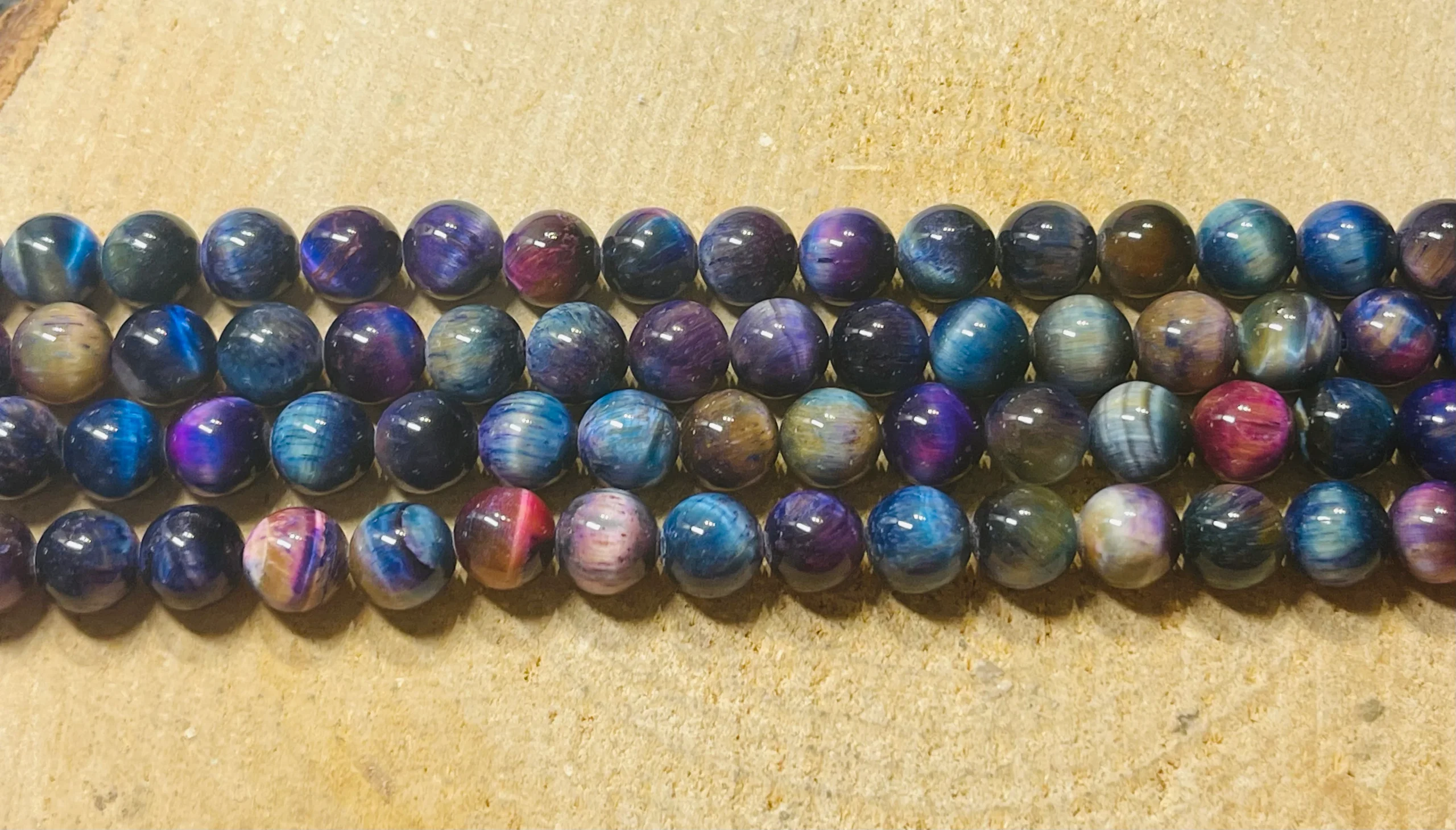Perles naturelles en Oeil de Tigre arc en ciel en 8 mm