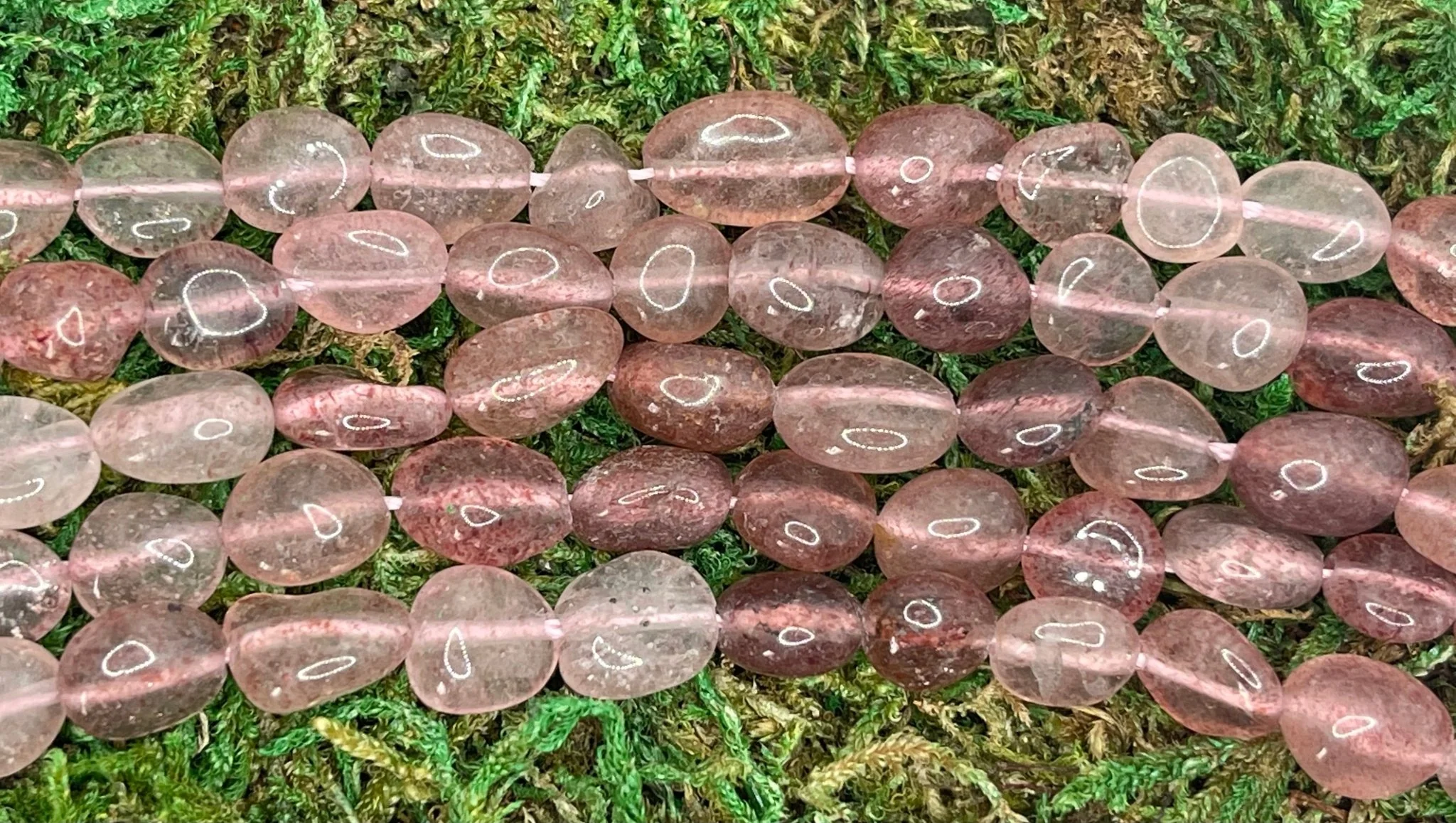 Perles naturelles en Quartz fraise en Nuggets de 7 – 8 mm