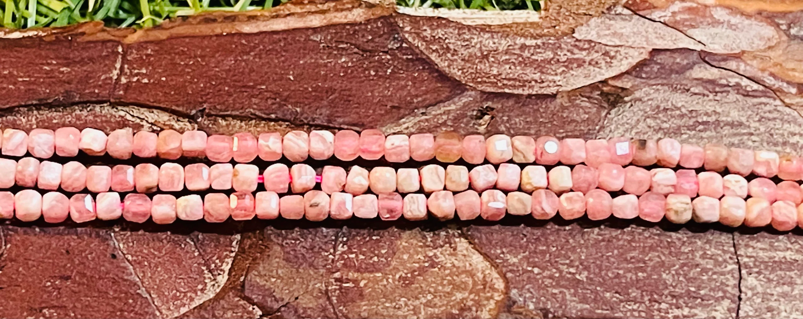 Il s’agit de perles naturelles véritables en Rhodochrosite cube à facettes.