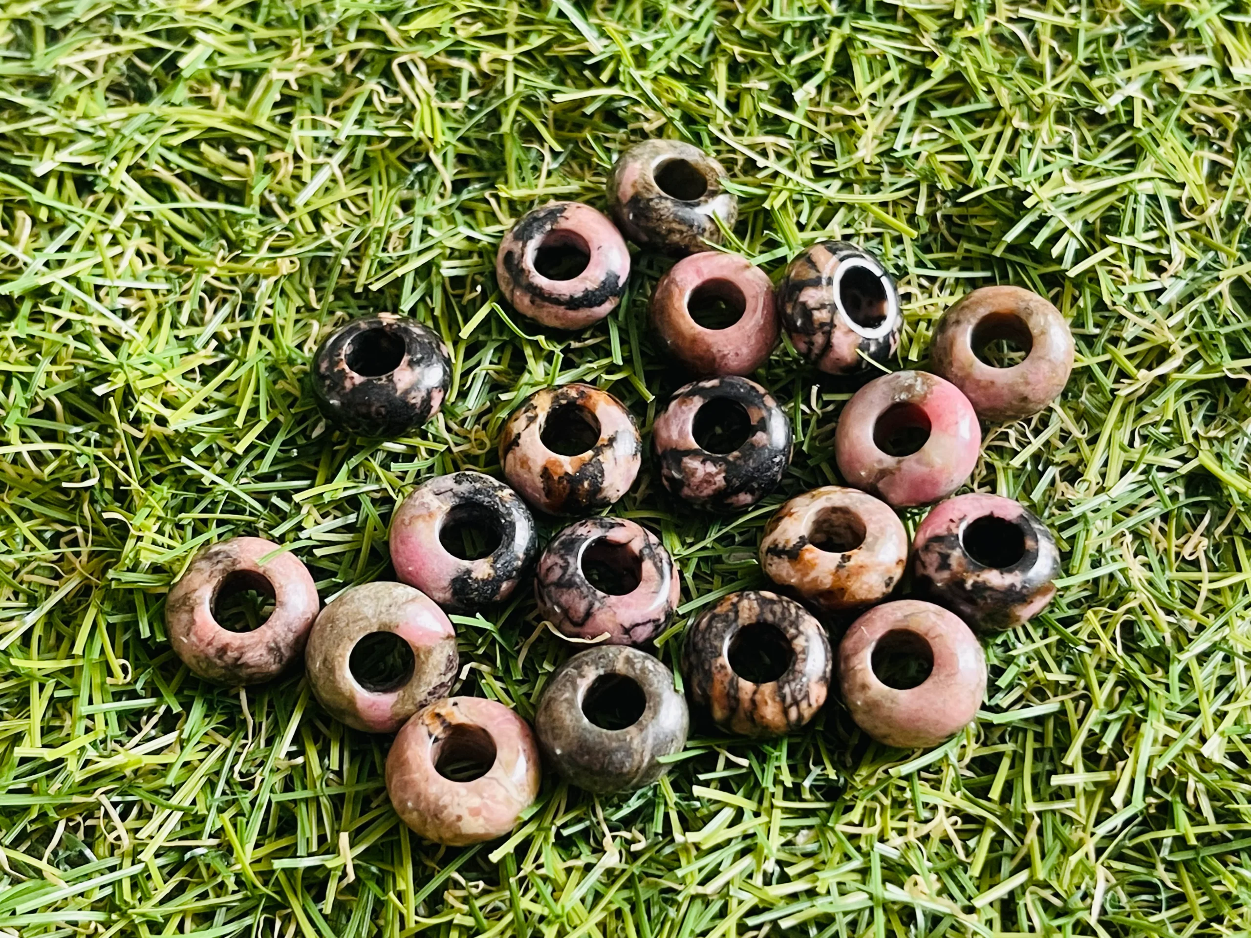 Perles naturelles en Rhodonite à grand trou