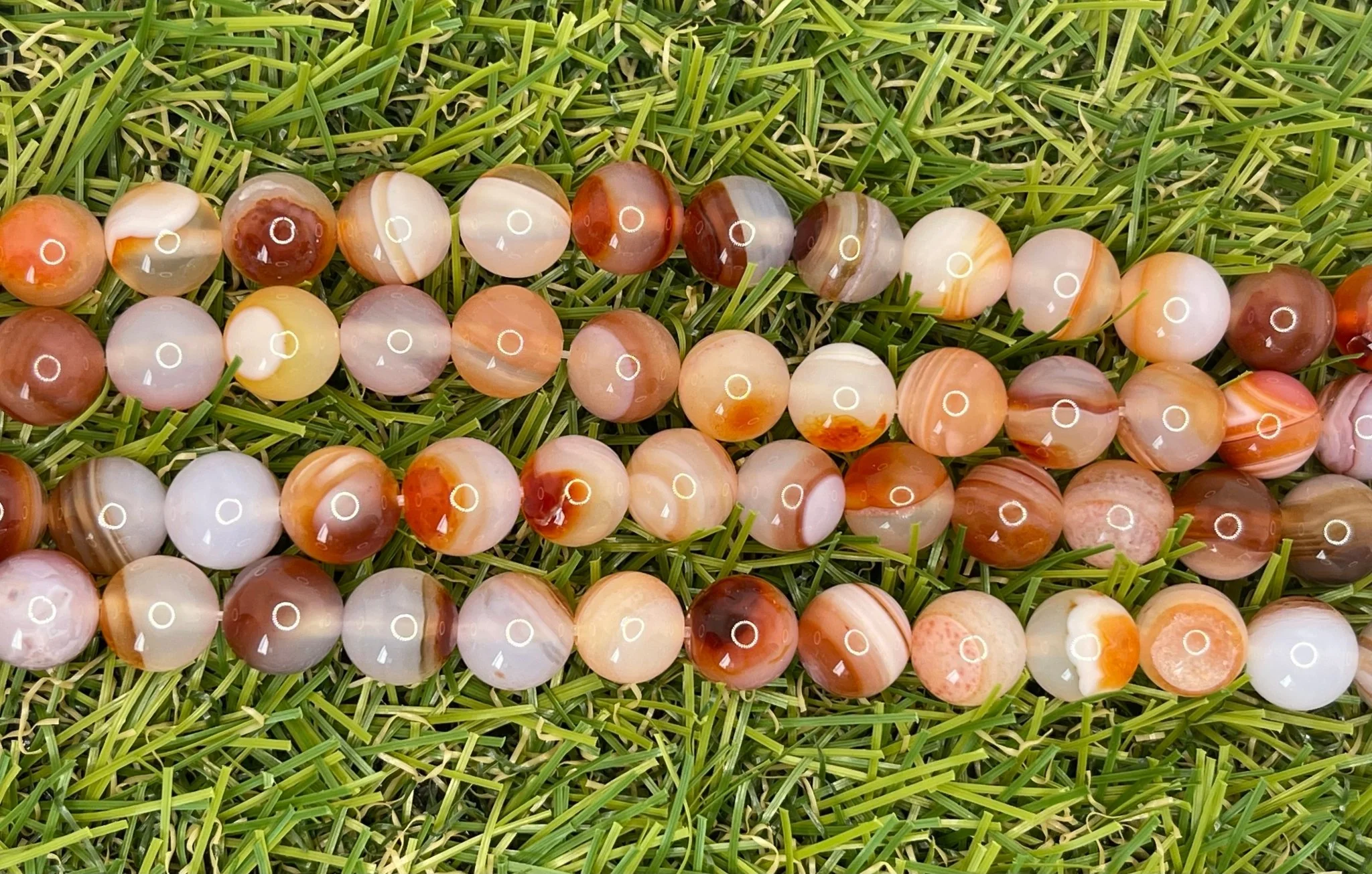 Il s’agit de perles naturelles véritables en Sardonyx orange. La Sardonyx est une variété de Calcédoine, c’est un mélange de sardoine et d’onyx.Disponible en 8 mm. Vendues par fil de 40 cm environ. Origine : Brésil Vertus : Pierre de protection et de chance, elle apporte stabilité et bonheur dans son couple.