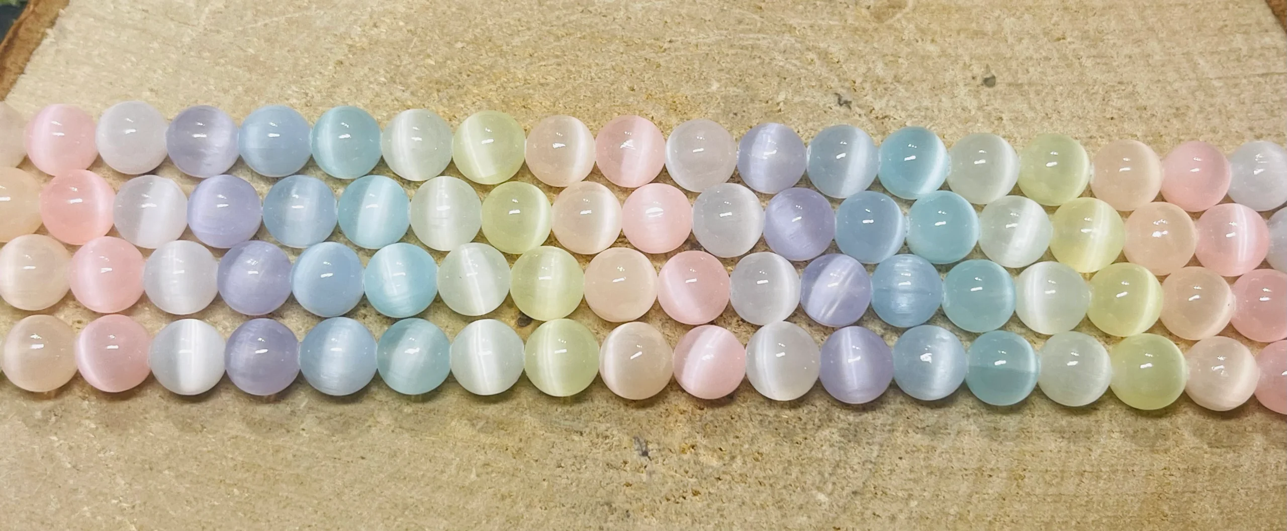 Perles naturelles en Sélénite arc en ciel du Canada en 6 mm