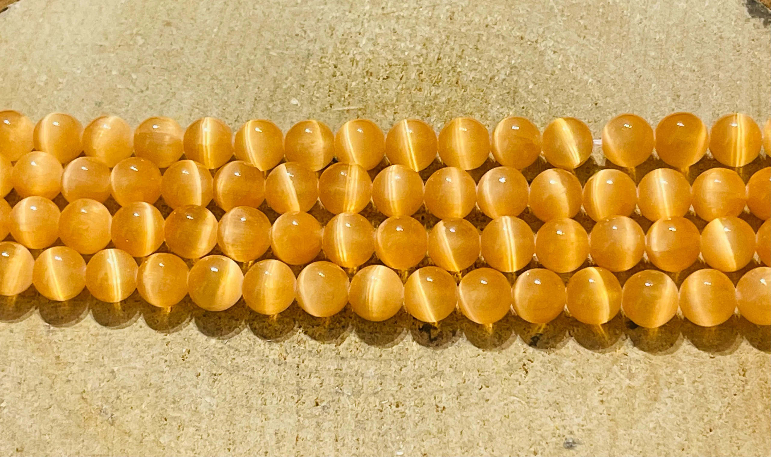 Perles naturelles en Sélénite orange du Canada en 8 mm