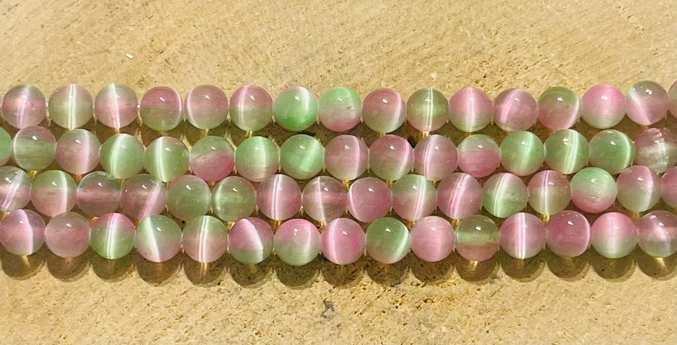 Perles naturelles en Sélénite rose vert du Canada en 8 mm