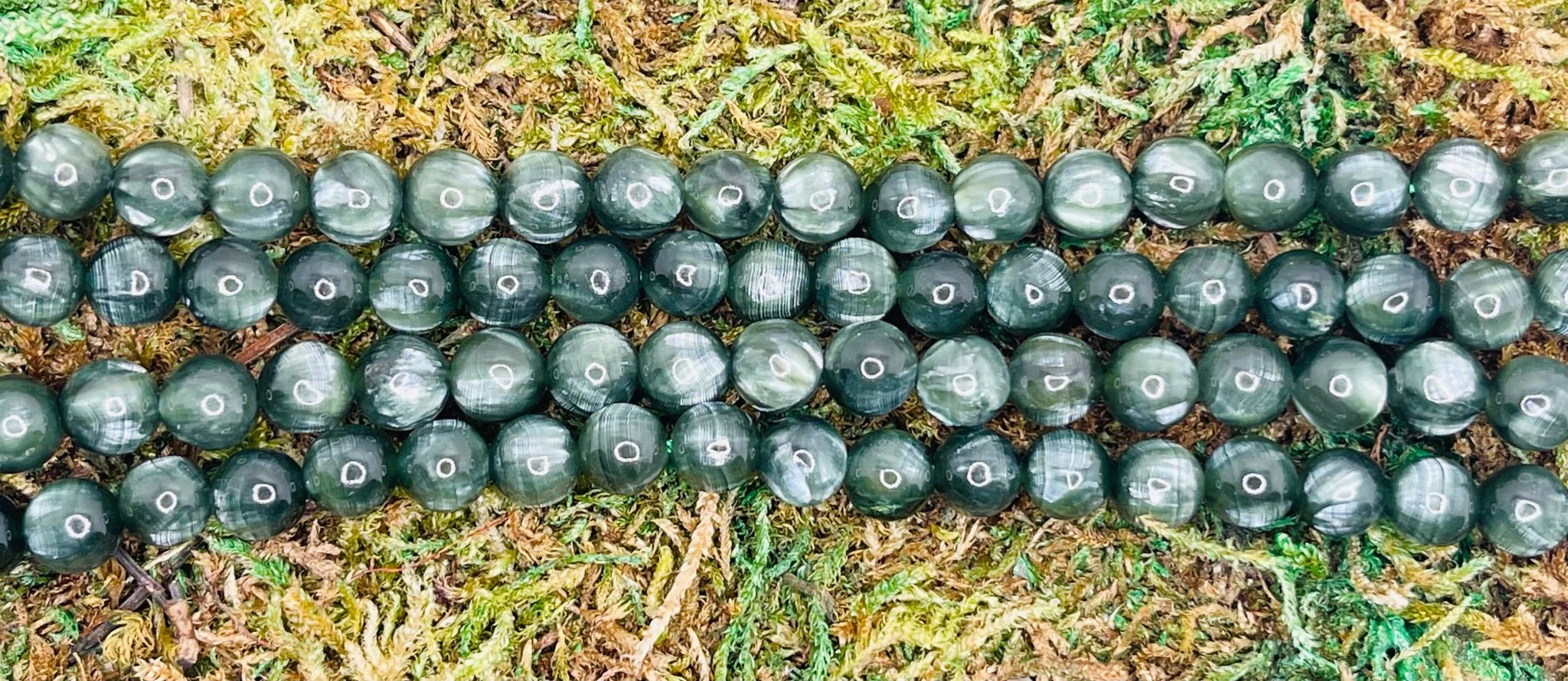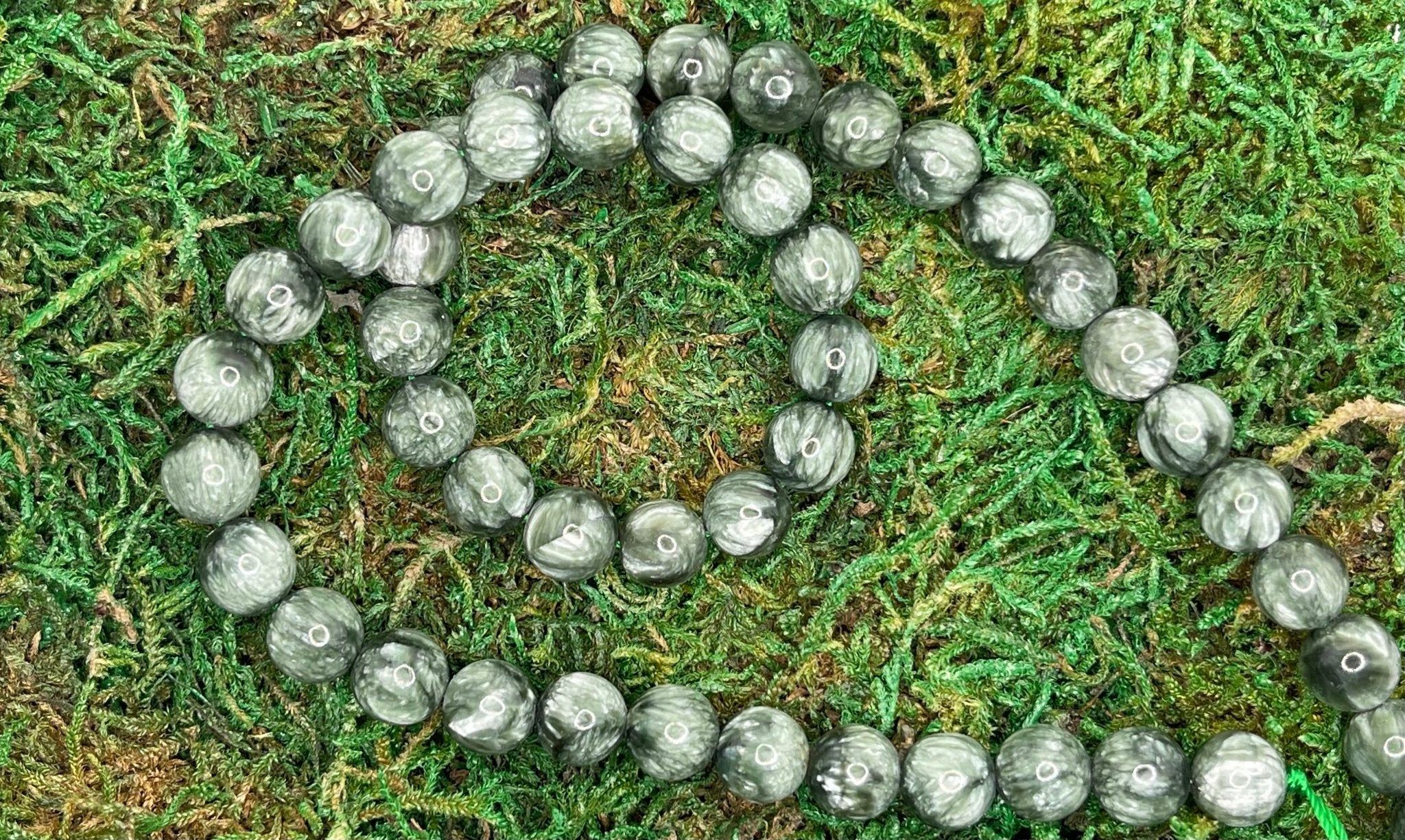 Perles naturelles en Séraphinite en 8 mm (lot de 10 perles)