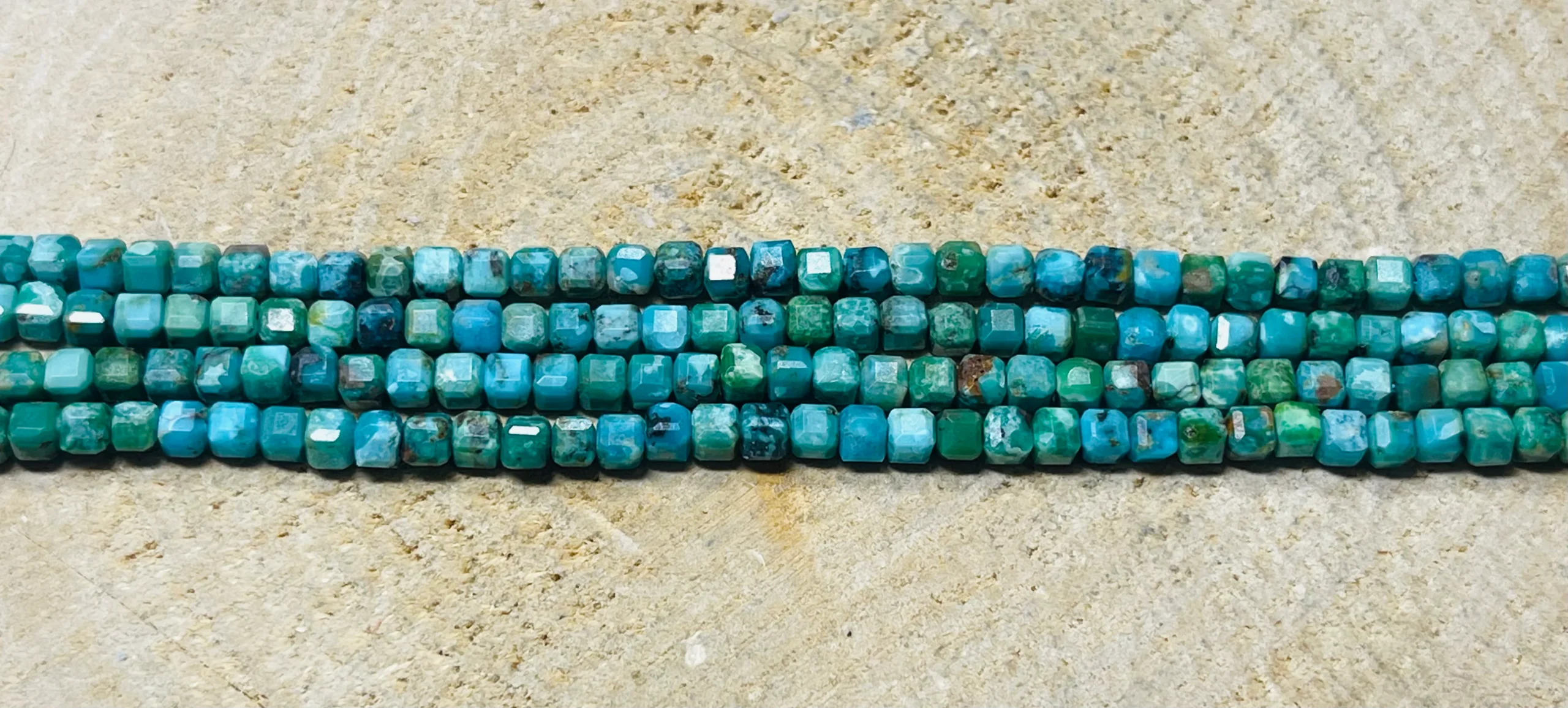 Il s’agit de perles naturelles véritables en Turquoise d’Hubei à facettes en cube.