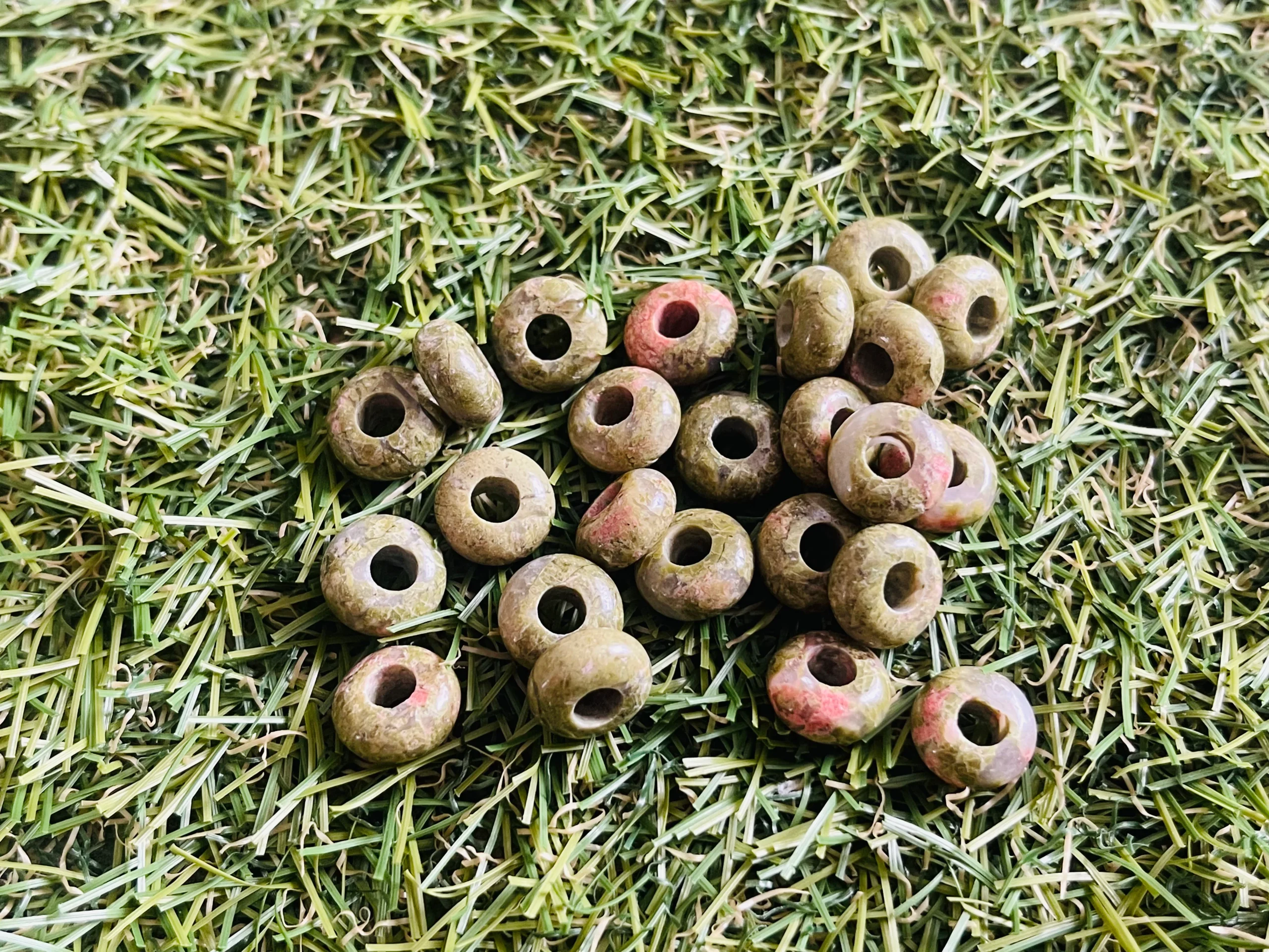 Perles naturelles en Unakite à grand trou
