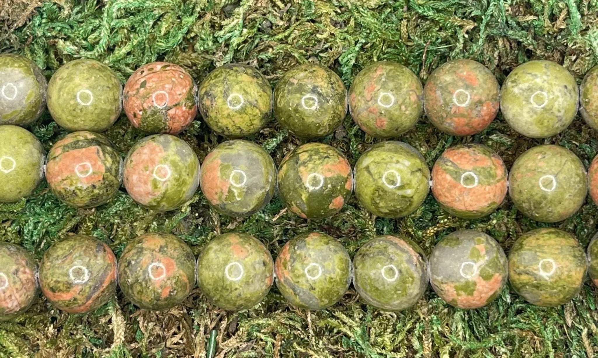 PERLES NATURELLES EN UNAKITE.