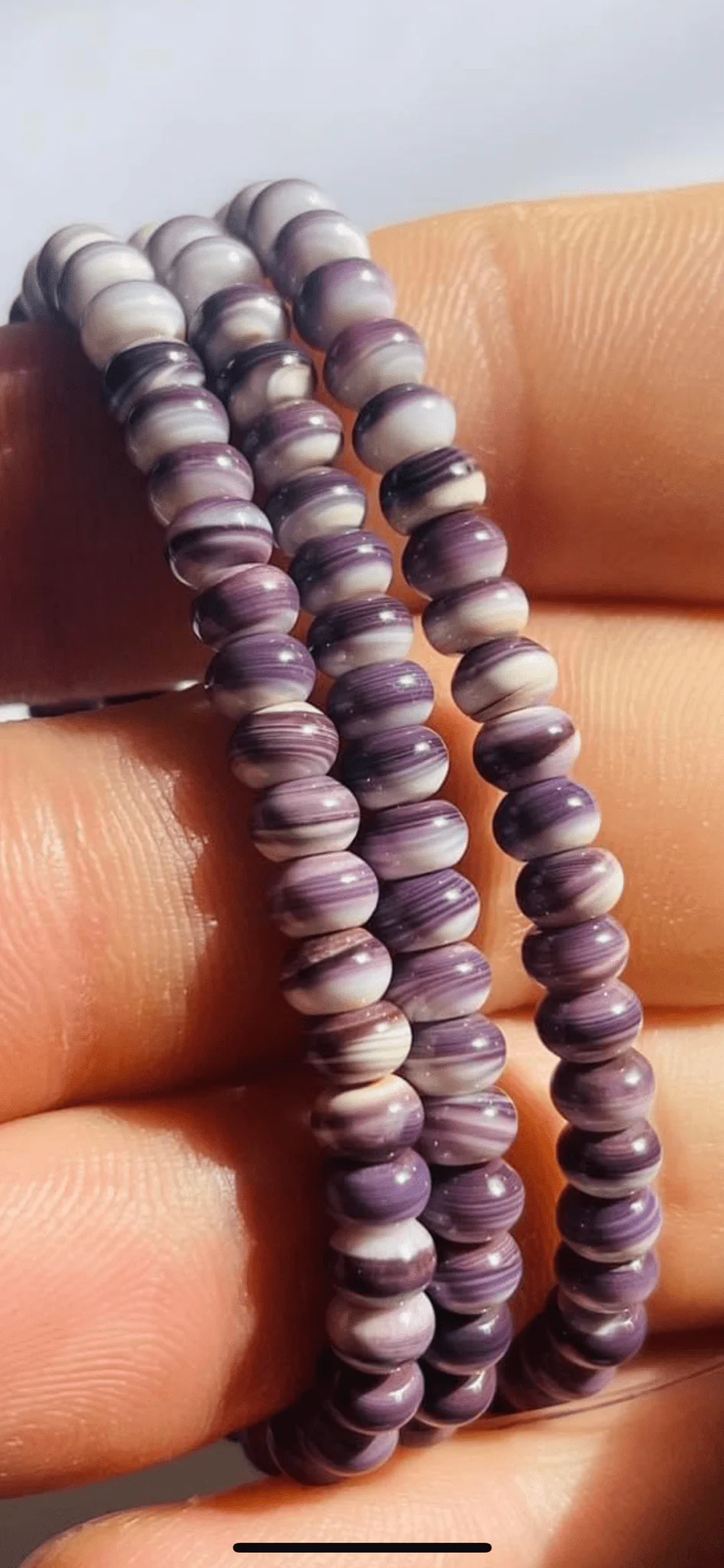 Il s’agit de perles naturelles véritables en Wampum de forme rondelle.