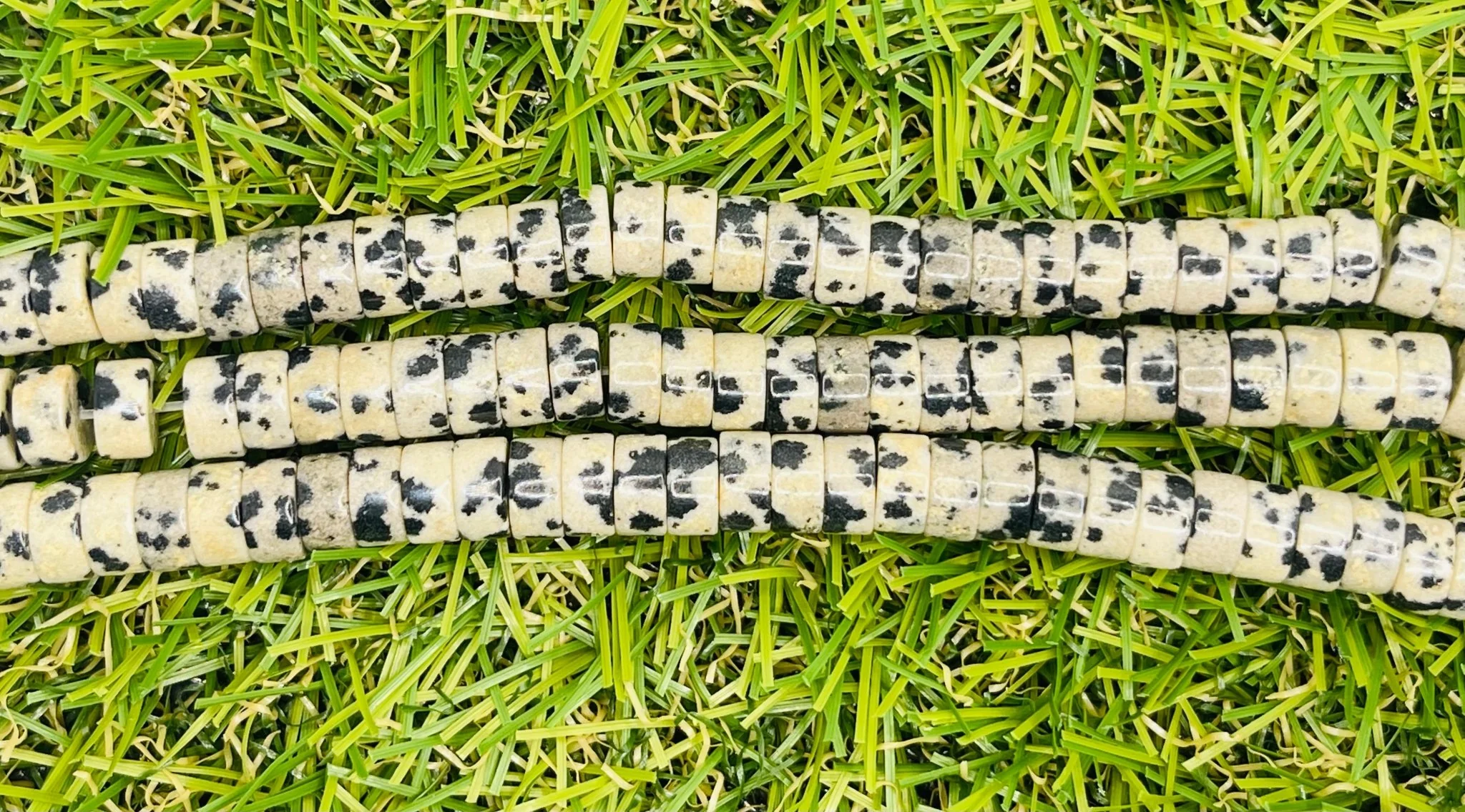 Perles naturelles Heishi en Jaspe Dalmatien en 6 mm