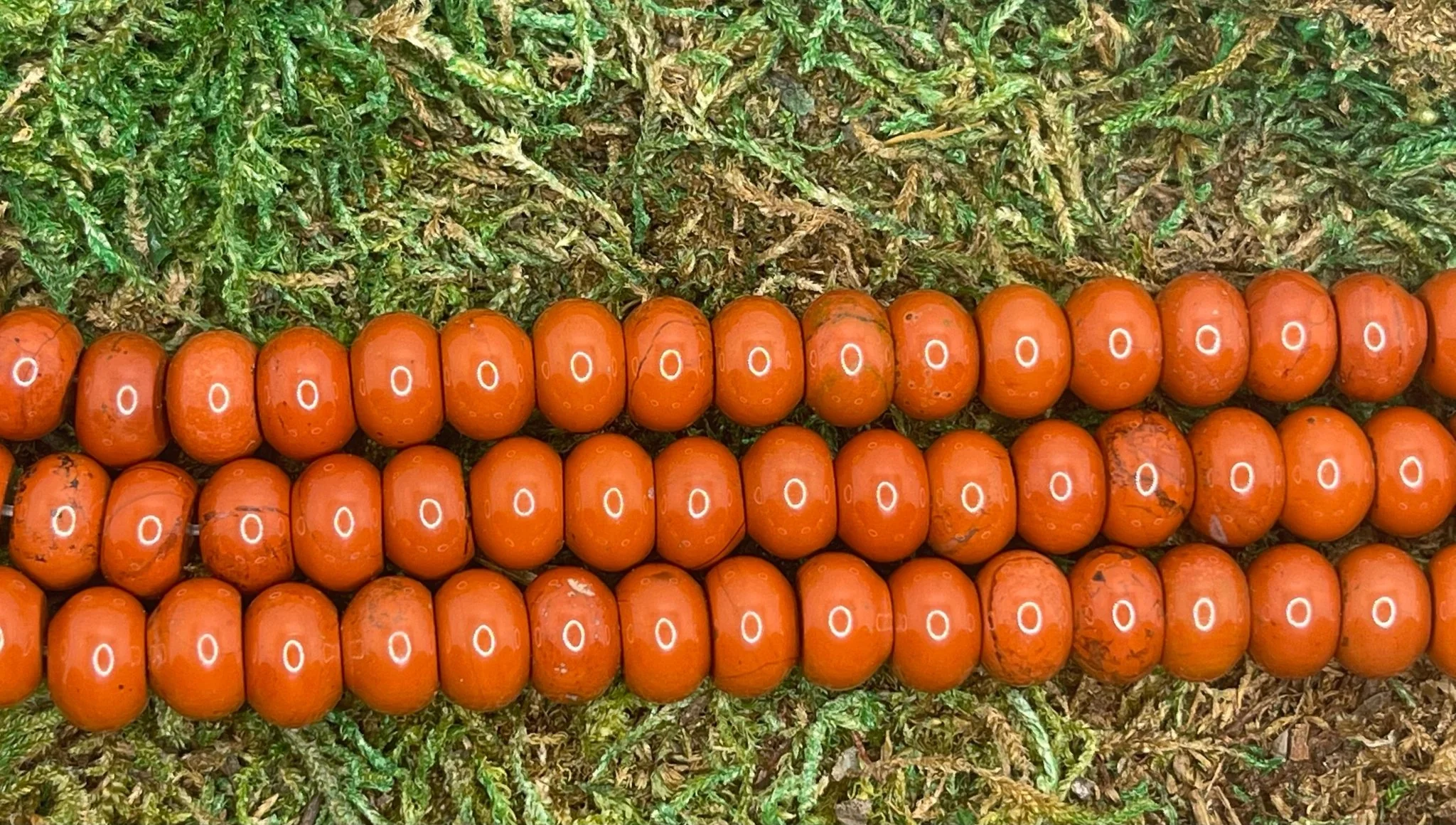 Il s’agit de perles naturelles véritables en Jaspe rouge en forme de rondelles.