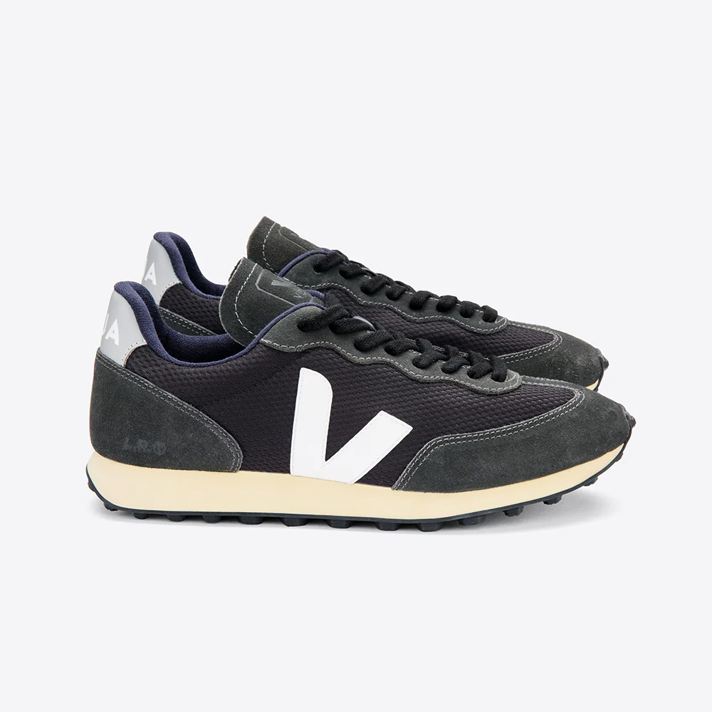 Tige : Alveomesh/suede Semelle extérieure : Caoutchouc naturel Semelle intérieure : Coton amovible Doublure : Coton biologique Couleur : Black-white-oxford-grey Conseil chaussant : Prenez votre taille Particularité : Eco-responsable Pays de Fabrication : Brésil Ref interne : D50 Marque : Veja Référence : Rbm01