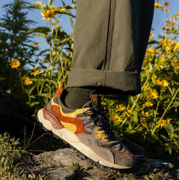 Tige : Suede et nylon Semelle extérieure : Gomme ultralight trail Semelle intérieure : Liege amovible Doublure : Cuir Couleur : Grey-yellow Conseil chaussant : Prenez votre taille Particularité : Eco-responsable Ref interne : P01 Marque : Flower mountain Référence : 1b41